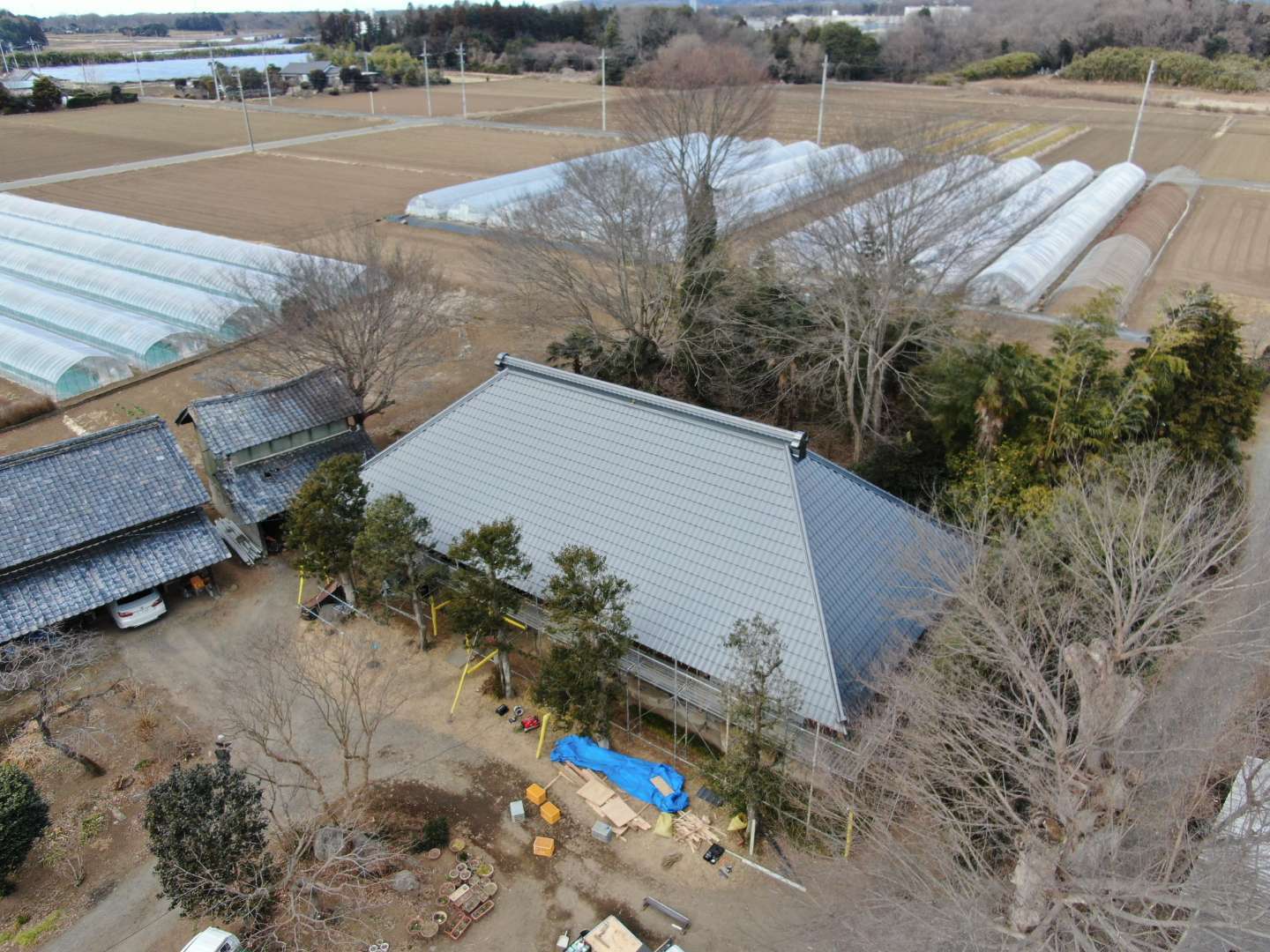 着工から3週間、四隅の隅木飾りを除いてほぼ終了。