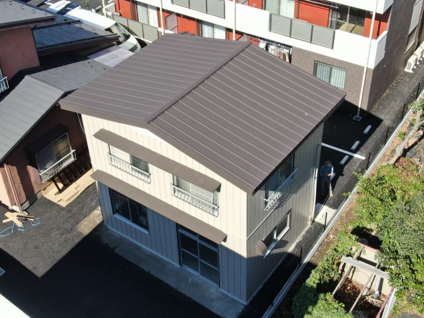 コロニアル屋根改修工事、外壁塗装、ドローン空撮