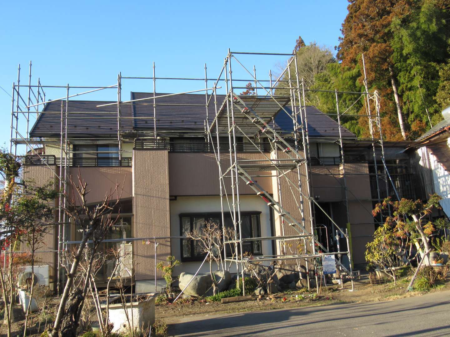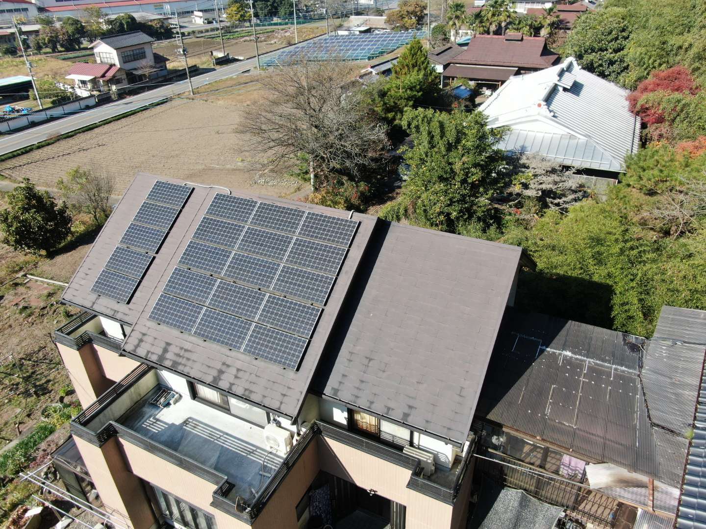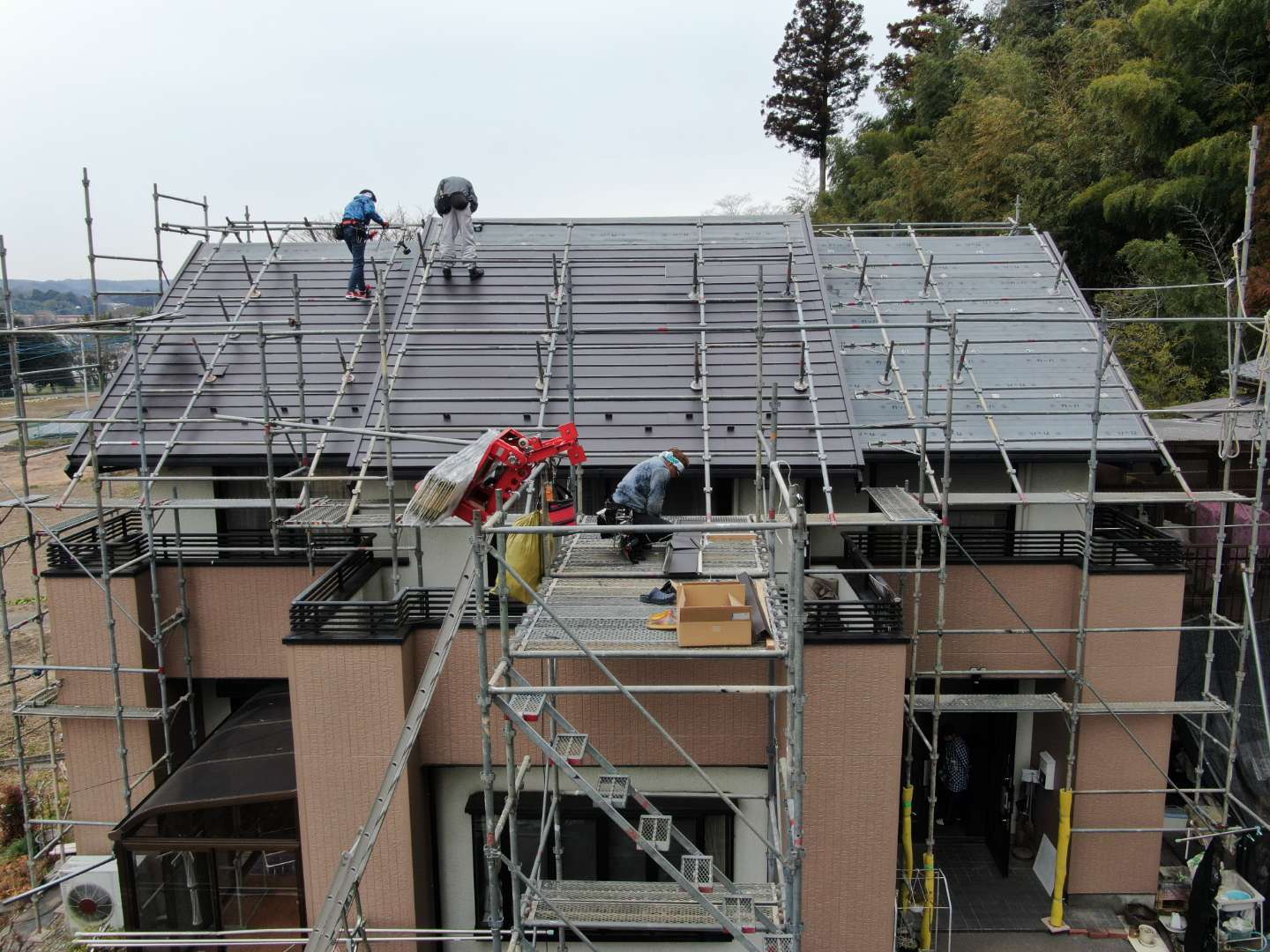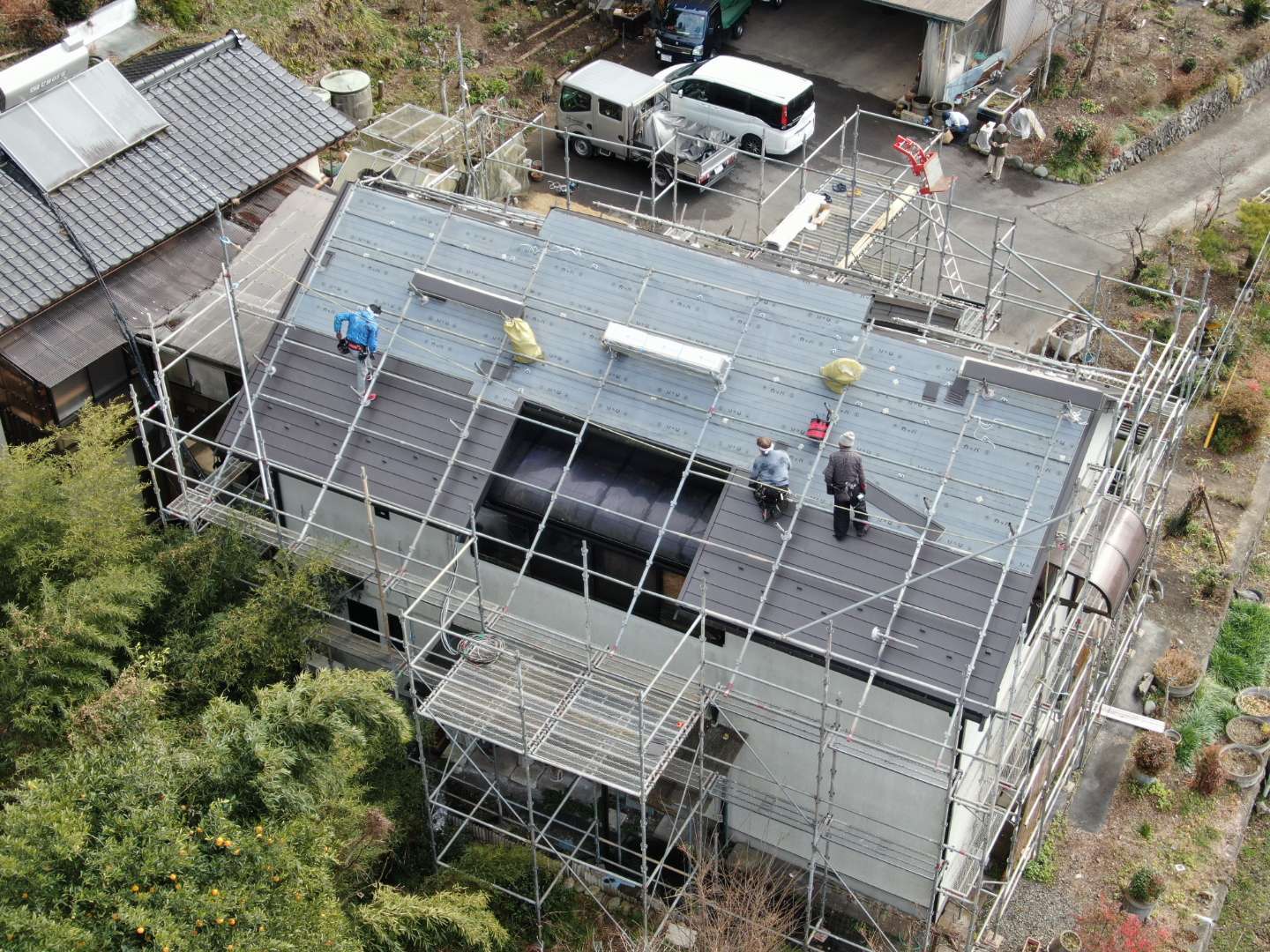 されてるのでそれを撤去してからの工事です。ソーラーパネルを撤去したところだけ色が違って見えます。