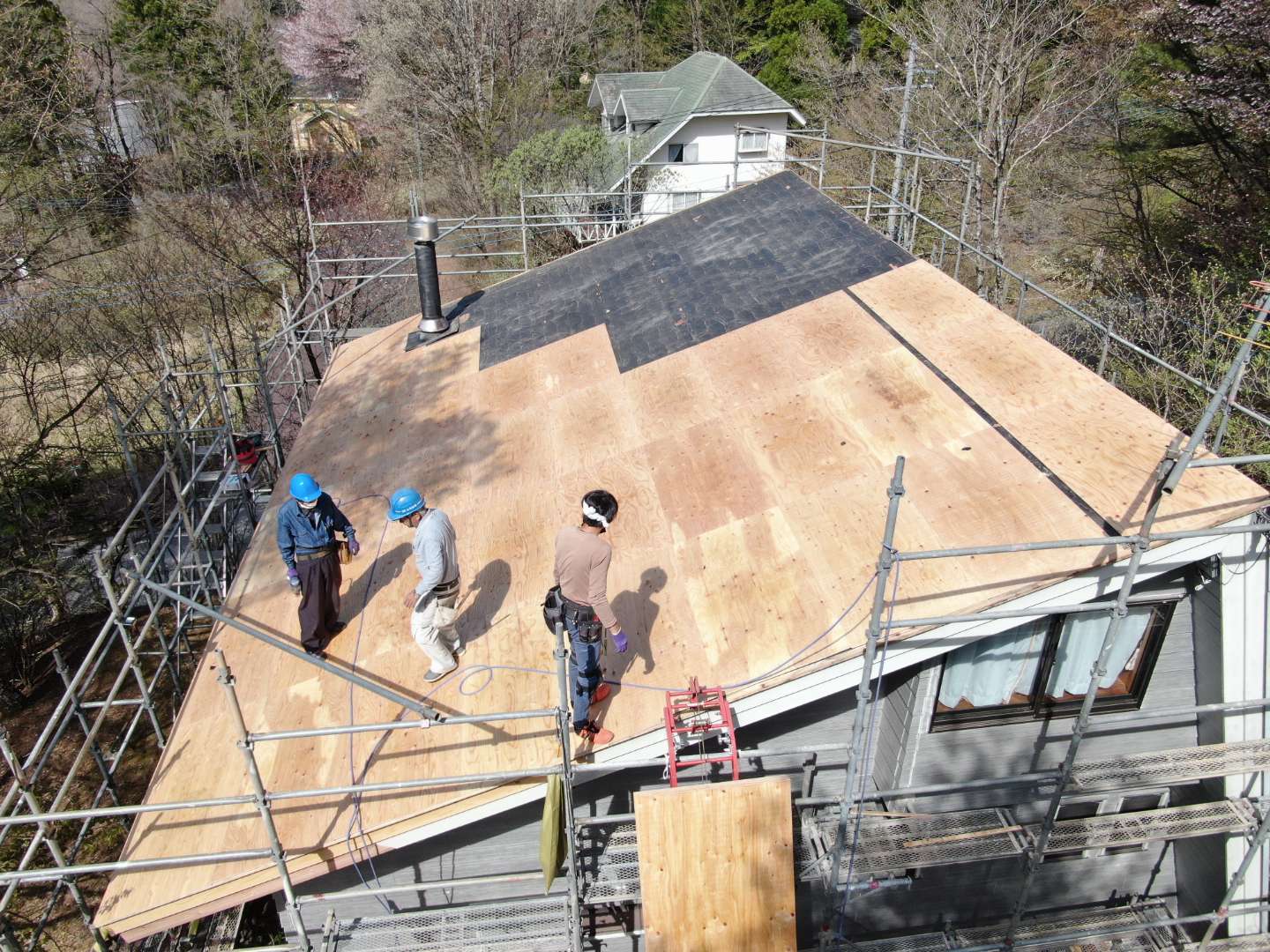 屋根下地、野地板を張ってます。