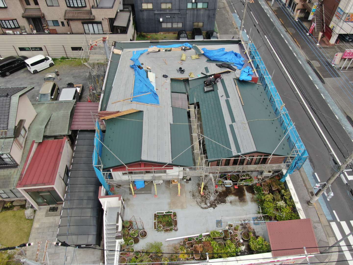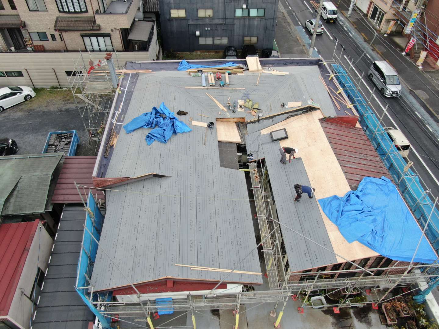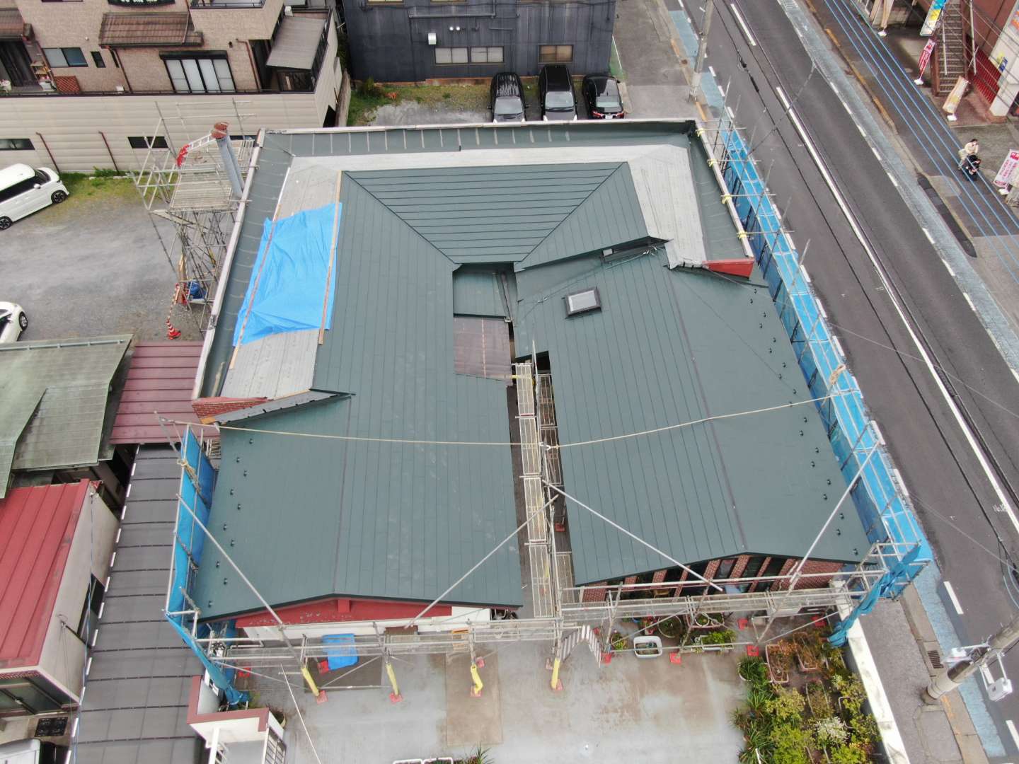 ご覧のようにこの複雑な屋根の改修はなかなかレベルの高い工事です。